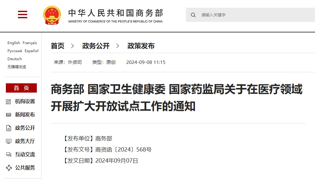 重大政策:允许外商在四地从事生物技术开发和应用 我国在医疗领域开展扩大开放试点工作