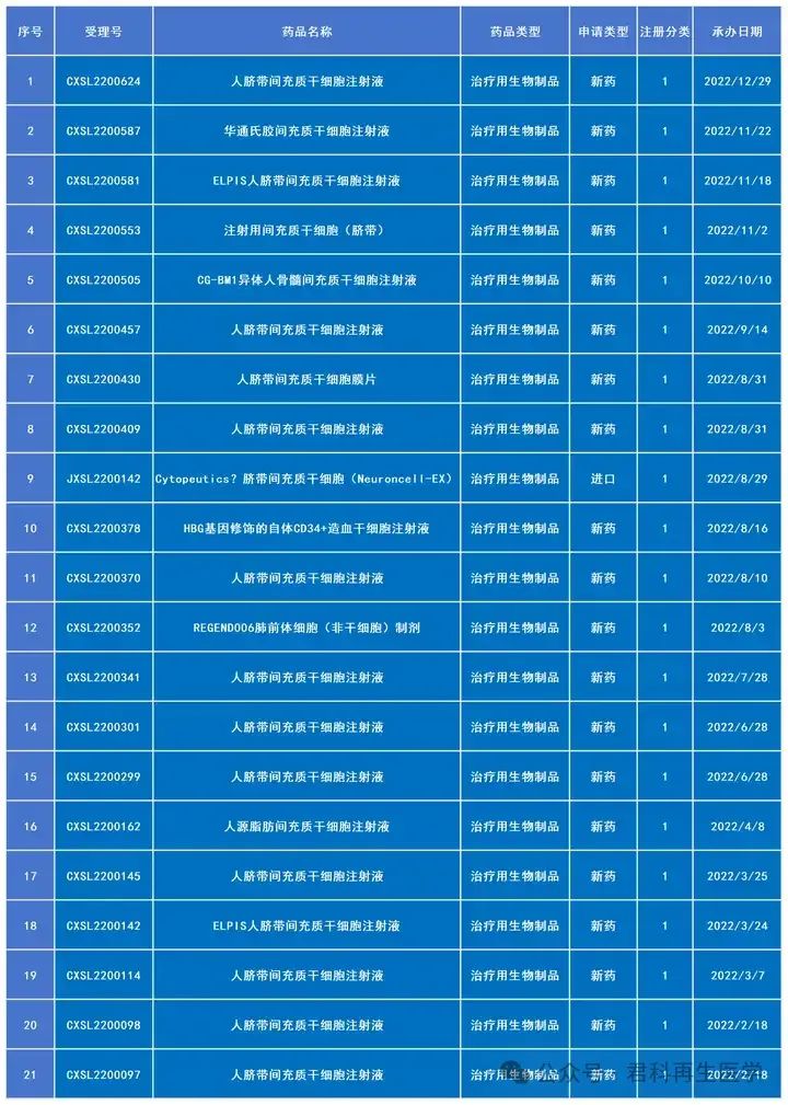 2021年已受理10款干细胞新药(包括1款补充申请)